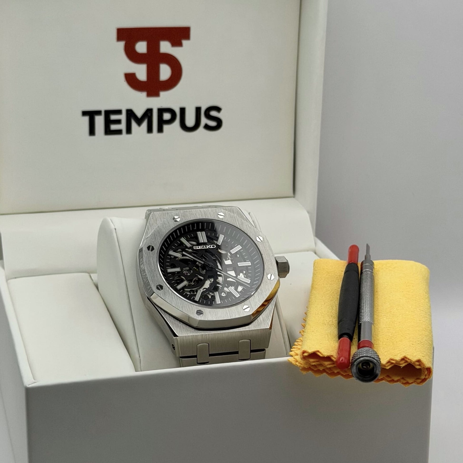 At Tempus, we go beyond watches. Each timepiece comes in a premium custom box with a free adjustment kit for the perfect fit, reflecting our commitment to quality and detail.