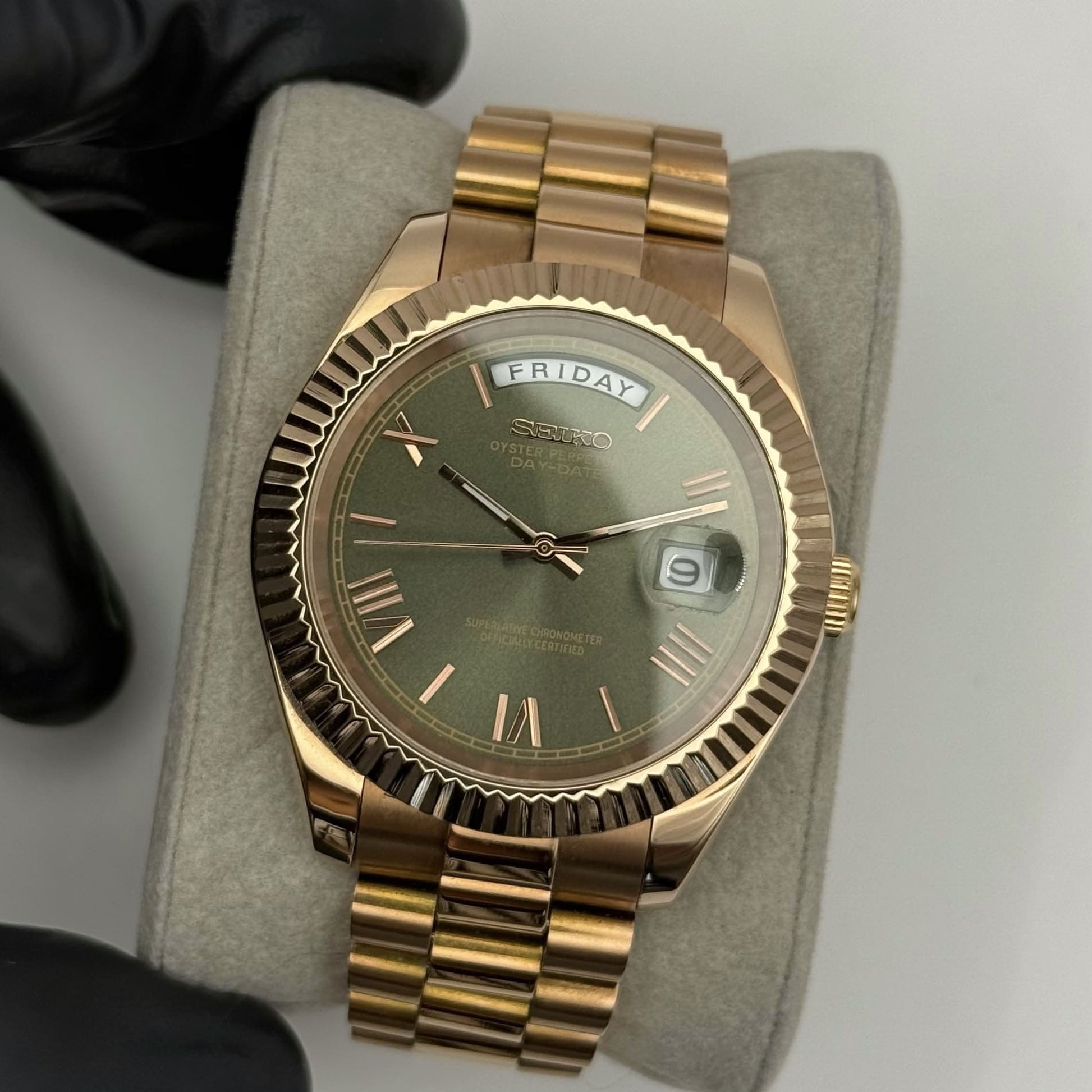 Inspirado no design clássico do Day-Date, apresentamos o Seiko Mod Day-Date. Um relógio de alta qualidade de 40 mm que combina a aliança perfeita entre excelência e acessibilidade.