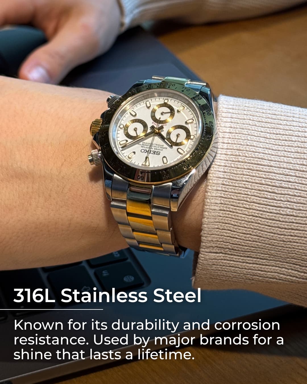 Made of 316L Stainless Steel and Sapphire Crystal for real durability & elegance.
