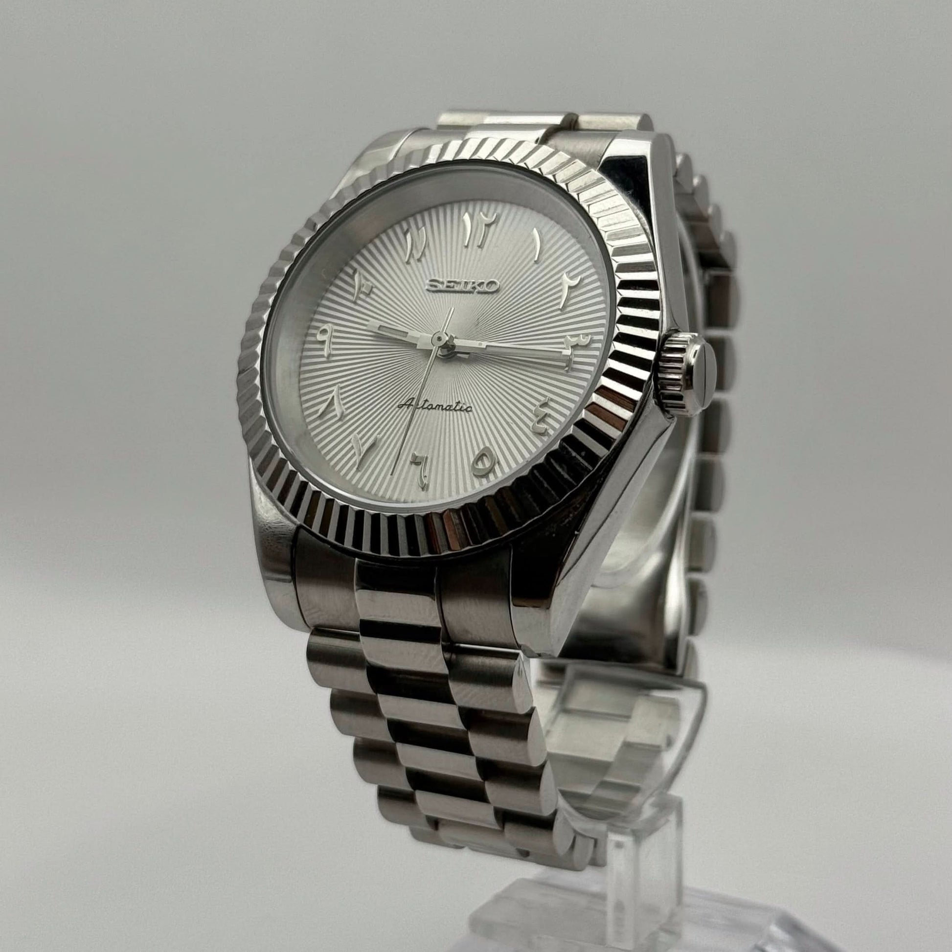 Inspirado no design icónico do Datejust, e apresentando o prestigiado movimento automático Seiko NH35, apresentamos o Seiko Mod Datejust. Um relógio de alta qualidade de 36/40 mm que combina a aliança perfeita entre excelência e acessibilidade.